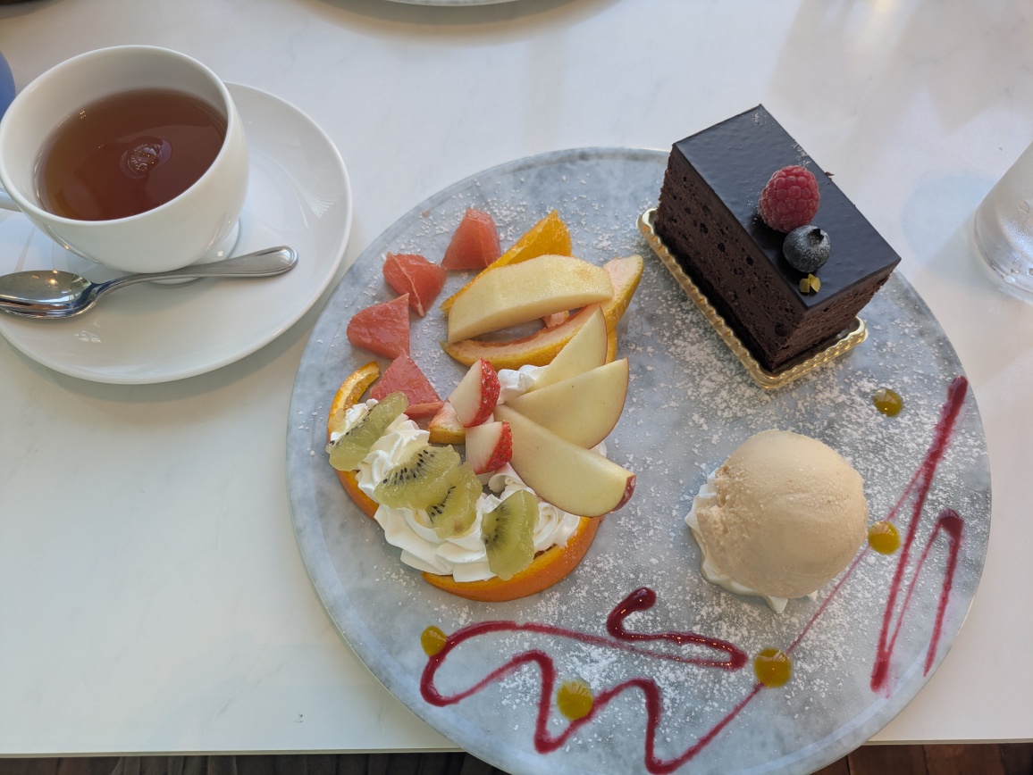 アイスとフルーツ盛り合わせ付きでちょっと贅沢に。