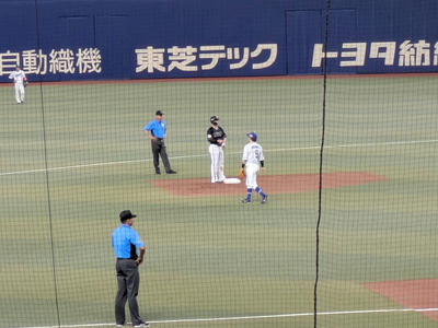 一塁からも還ってこられる当たりだったにもかかわらず、やたらのんびり三塁へ走って来たと思ったら、そういやランナーは田嶋でした。