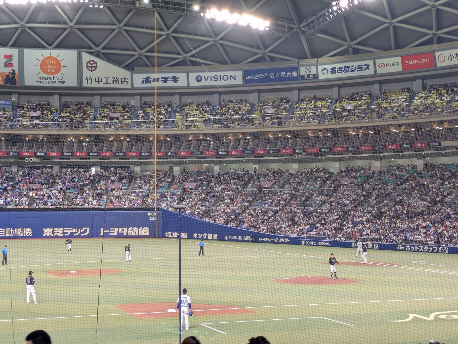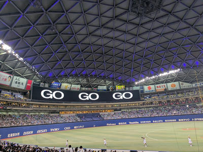 もう少し気候がましなら、混雑を避けてひと駅歩くとかできたかもしれませんが、まさか6月にこんな暑さに見舞われるとは思ってもいませんでした。ドーム球場で良かったけれども…。