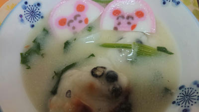 正月はコレ(←個人的意見)、の白味噌あん餅雑煮と、