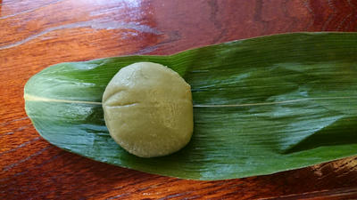 時間つぶしの間購入した笹巻あんぷ。生麩のおまんじゅうです。柔らかくておいしかったです。