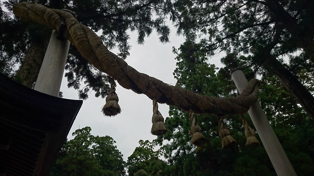 拝殿前は柱の間にしめ縄を張った変わった鳥居です。