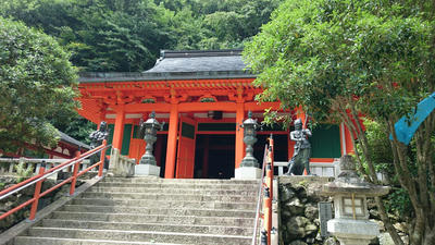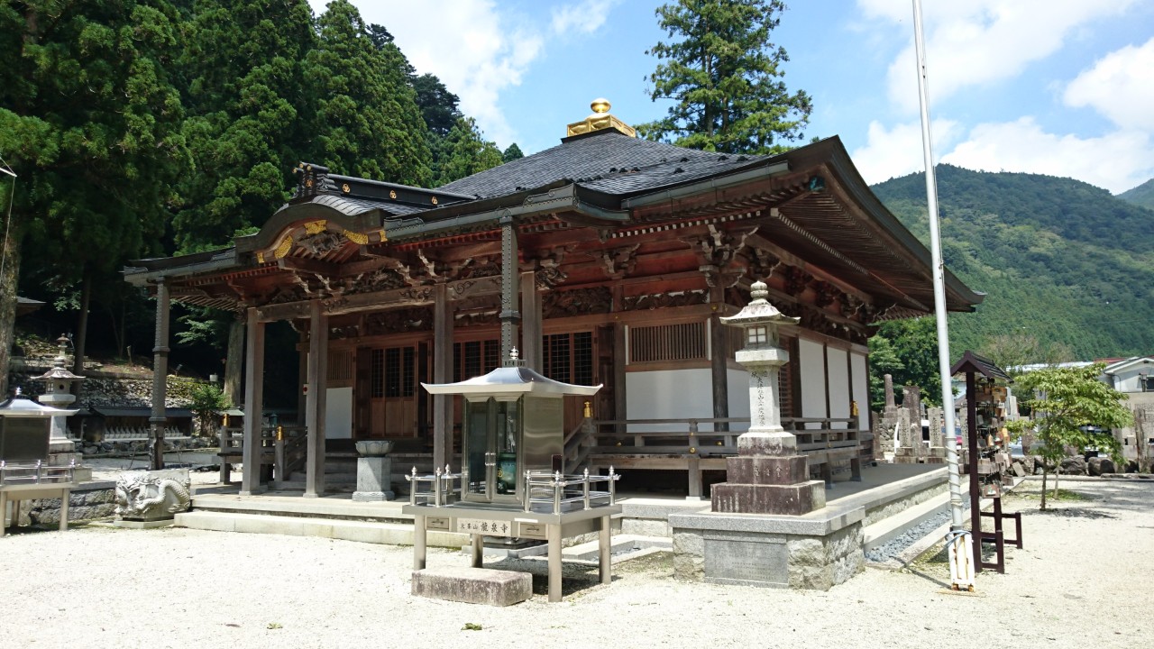 本堂の前にはふたつの鬼の像が。役行者の弟子になった鬼の夫婦だそうな。