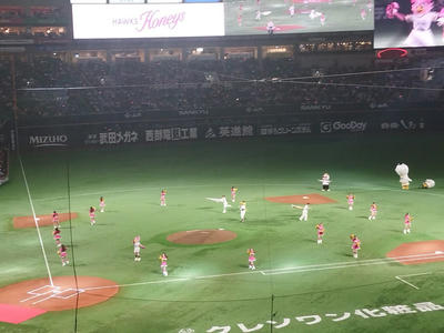 マチャドは回またぎも完璧に抑え、試合はまさかの延長へ。10回表も得点できず、その裏、やってきました本日の平野劇場福岡公演。それを知ったのはすべて終わった後でした。リアルタイムで追わなくて良かった…。
