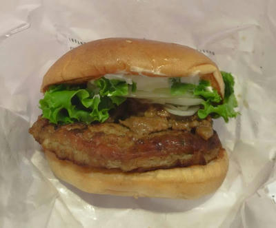栗原選手の炭火牛カルビバーガー(ビールセット)。