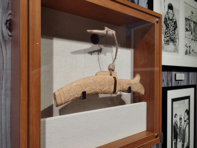 インカラマッのシラッキカムイ。白いキツネの頭骨なのだとか。
