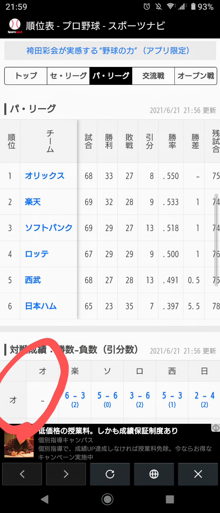 そしてそして、並んでいたソフトバンクが敗れたことで…。